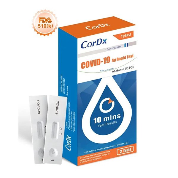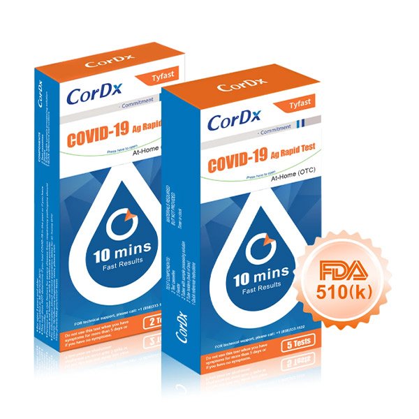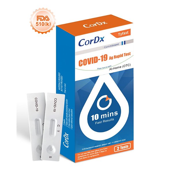 This test is for non-prescription home use by individuals aged 14 years or older testing themselves, or adults testing individuals aged 2 years or older. The CorDx Tyfast COVID-19 Ag Rapid Test does not differentiate between SARS-CoV and SARS-CoV-2