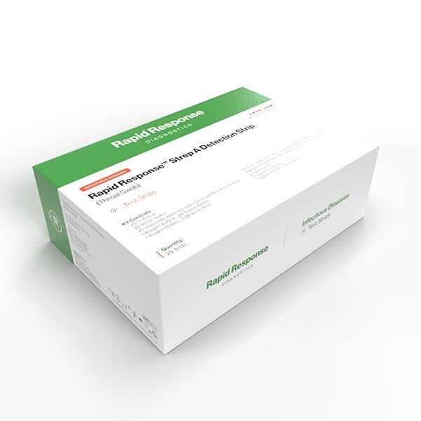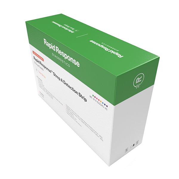 The Rapid Response™ Strep A Detection Strip is a rapid test for the qualitative detection of Streptococcus pyogenes (Group A ß-hemolytic Streptococcus, Strep A) antigen from throat swab specimens of symptomatic patients to aid in the diagnosis of Group A Streptococcus bacterial infection, providing results within 5 minutes.